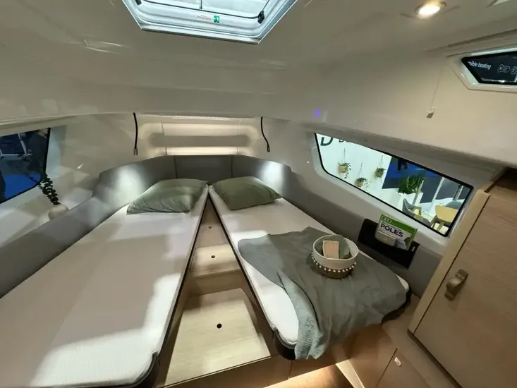 - Double Forward master cabin with scissor action berths, which allow conversion into two singles