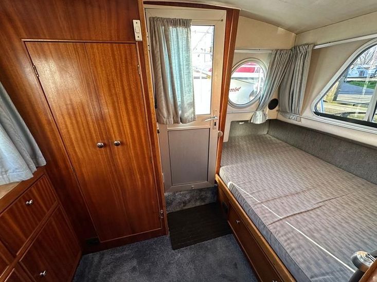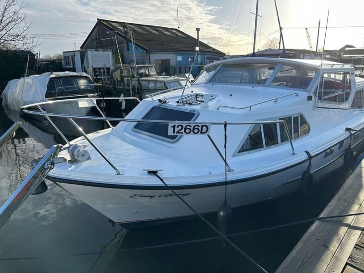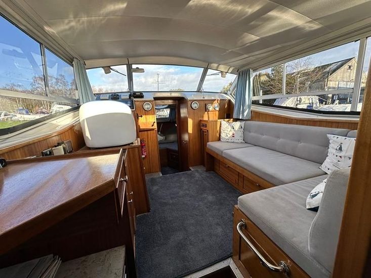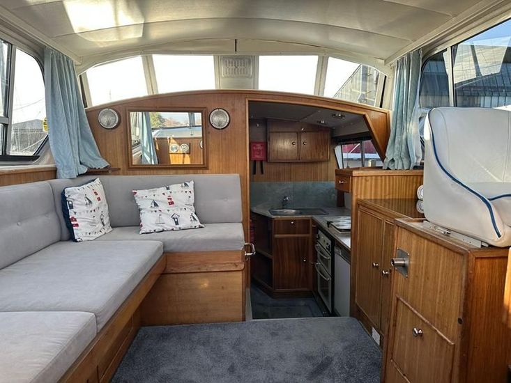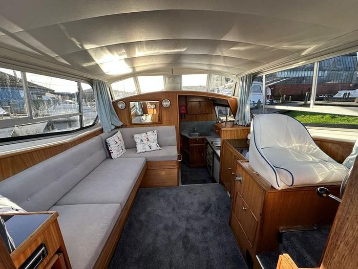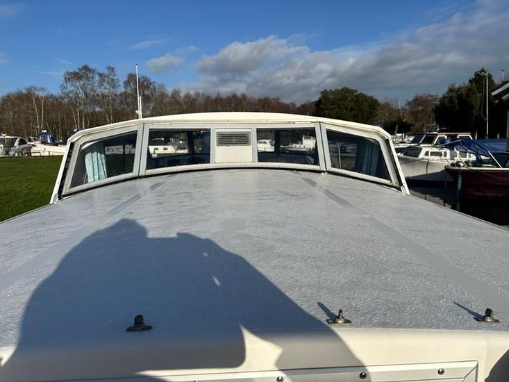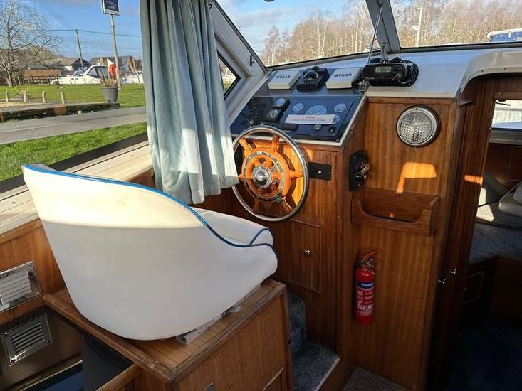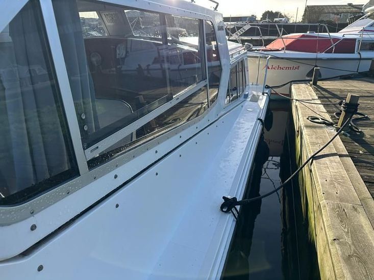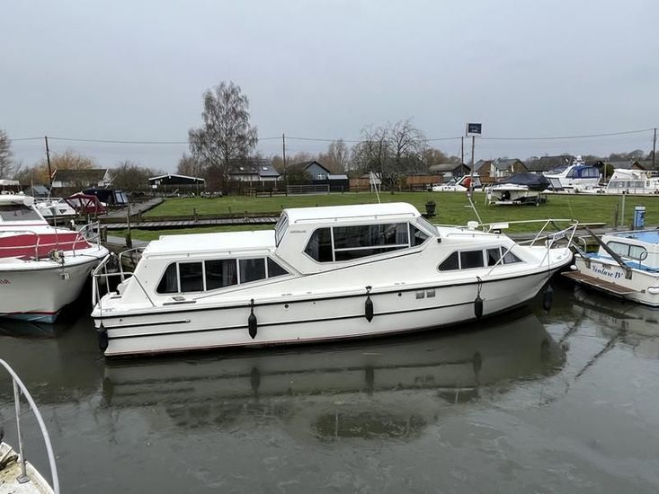 Sheerline 950 CC - 1991 - Powered by a Nanni 4.190HE 43hp diesel engine. Up to 6 berth accommodation over two cabins and saloon with two toilet/showers. Specification to include bow thruster, shore power, battery charger, warm air heating, Windlass, sliding wheelhouse roof and folding screens for low air draft & increased inland access, BSC Exp Jan 2030 Davits. A clean example of the ever popular Sheerline 950, presented in her original gel coat and always kept in private ownership.