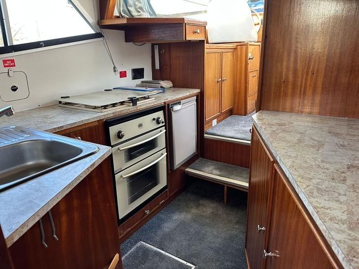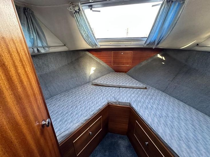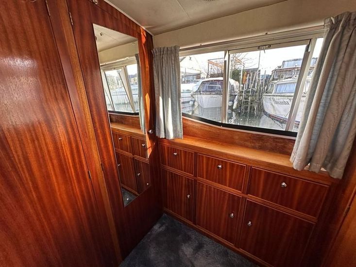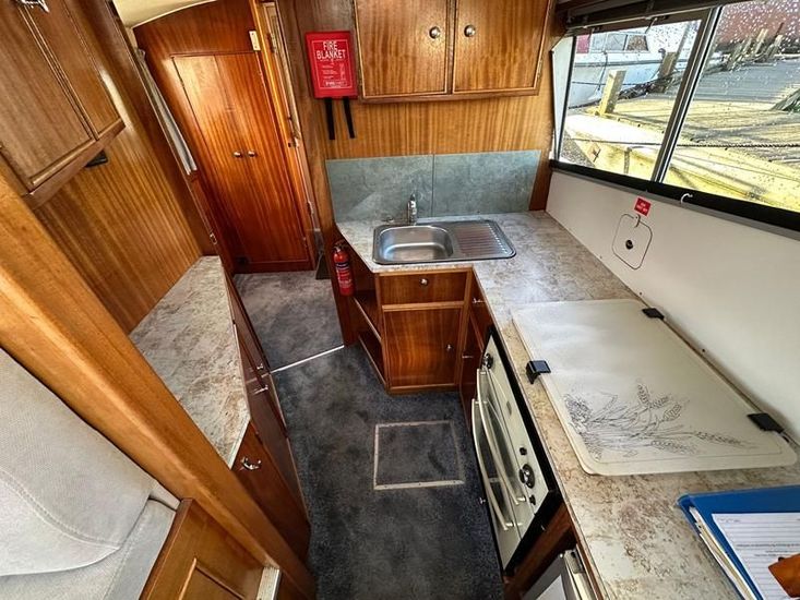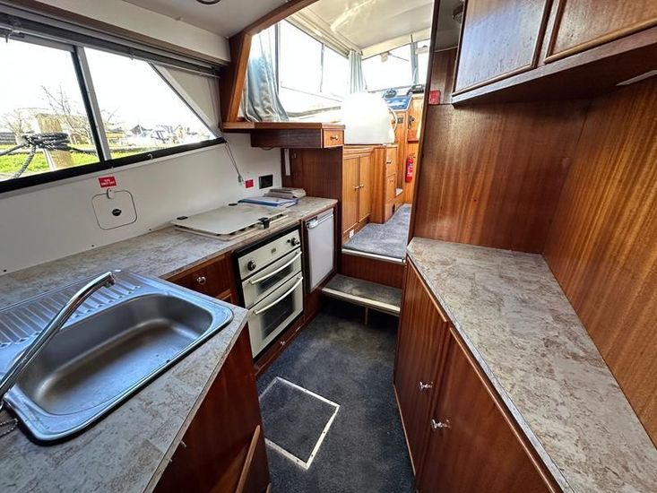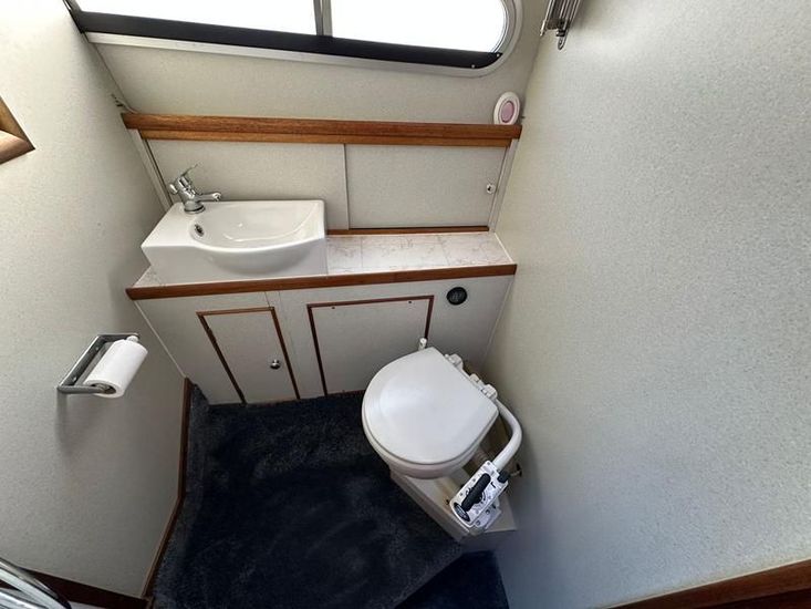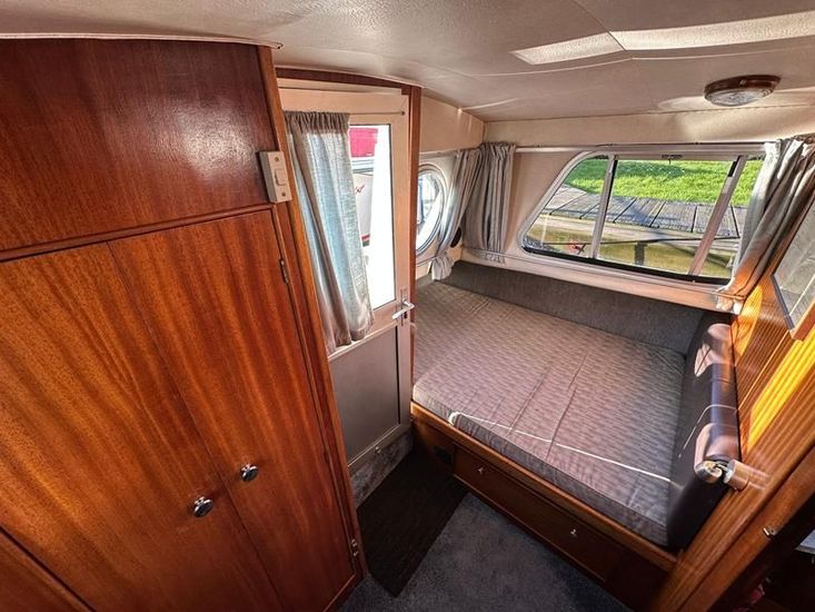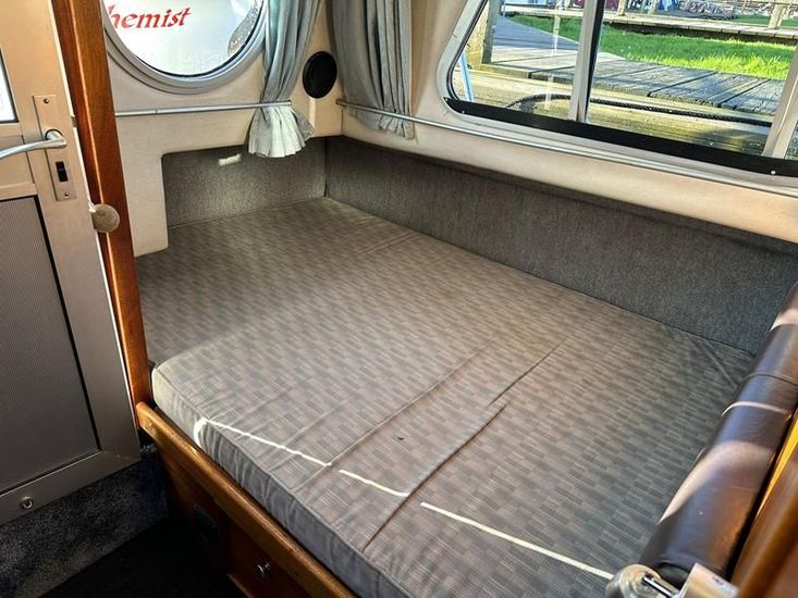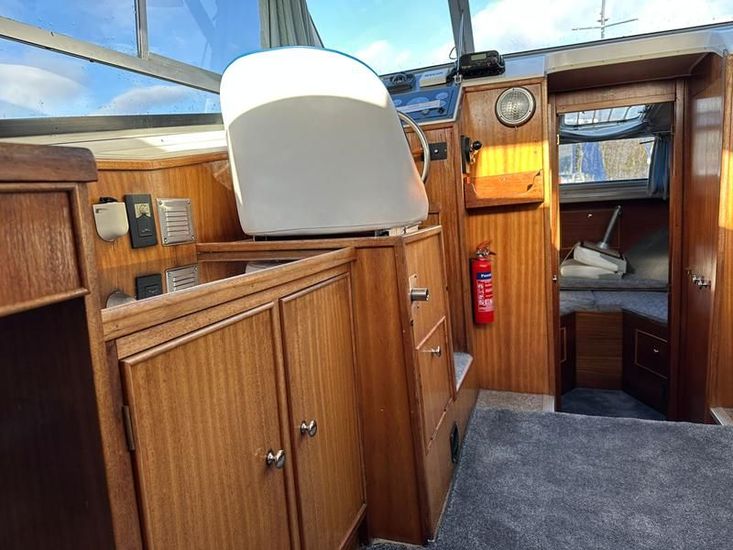 Sheerline 950 CC - 1991 - Powered by a Nanni 4.190HE 43hp diesel engine. Up to 6 berth accommodation over two cabins and saloon with two toilet/showers. Specification to include bow thruster, shore power, battery charger, warm air heating, Windlass, sliding wheelhouse roof and folding screens for low air draft & increased inland access, BSC Exp Jan 2030 Davits. A clean example of the ever popular Sheerline 950, presented in her original gel coat and always kept in private ownership.